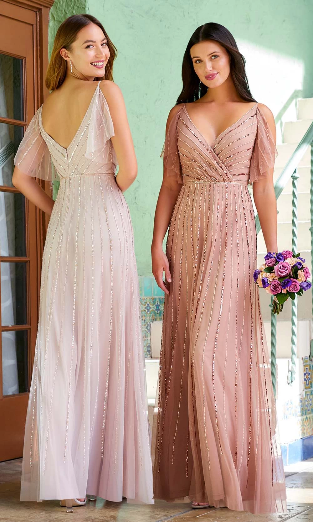 | Details: | Cold shoulder sleeveless, Wide neck, Sequins, Beads, Tulle, Flowy, Thin band, V back, Back zipper, Full length |