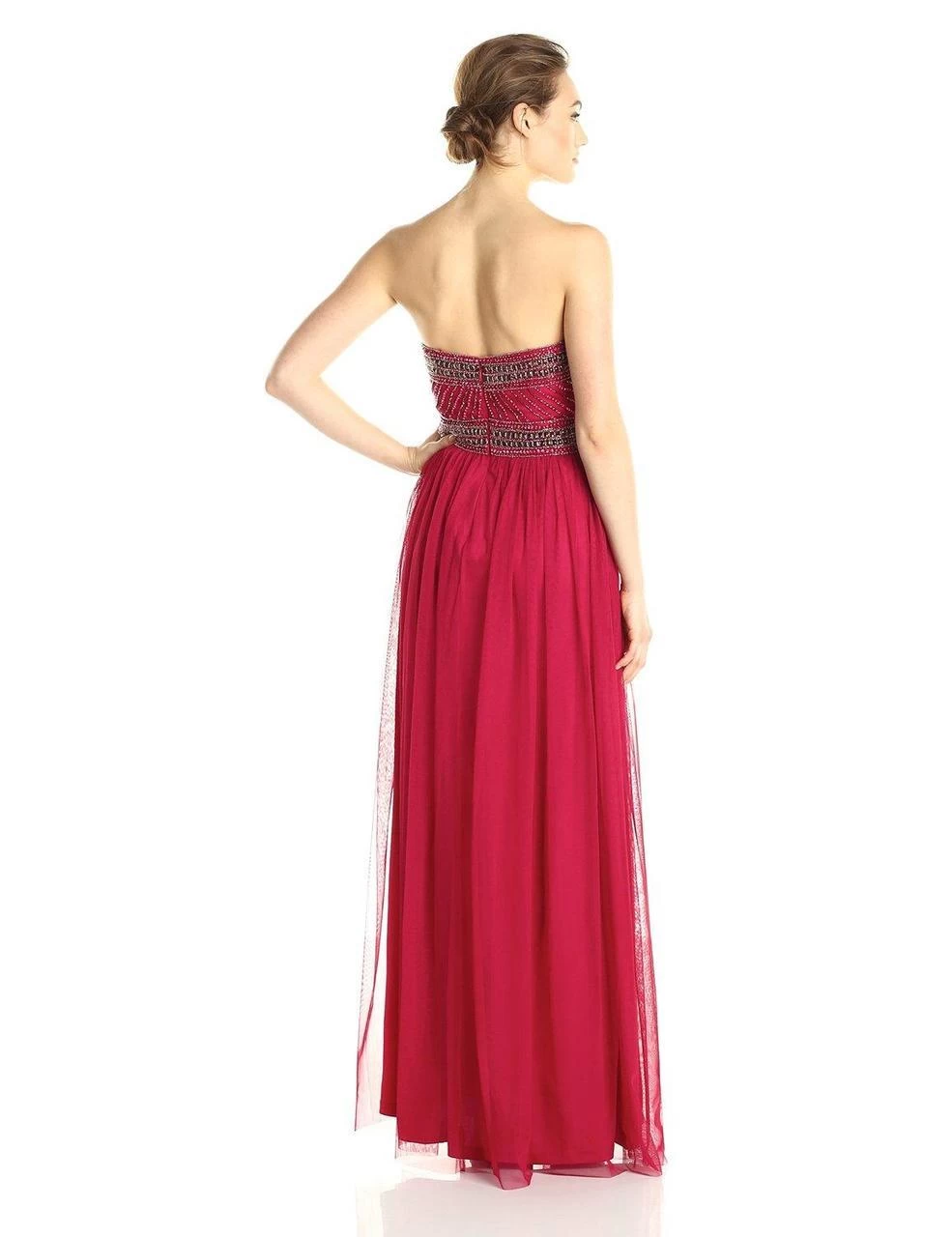 Overflow with iridescence and stunning poise in this glamorous Adrianna Papell 191910730 creation. Ornate with sequins and beads in a linear motif, this ravishing piece shows a strapless straight-across neckline and a mid-open back. Crowned with an ornate beadwork, the mesh A-line skirt flows divinely down to a glorious full-length hem. Be the talk of every party when you slide with this stunning Adrianna Papell masterpiece.
