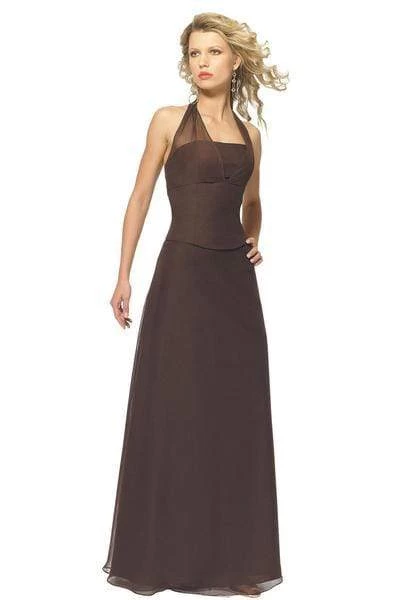 Be draped with an exceptionally feminine style in this chic Alexia Designs 2602 creation. Defined with an illusion halter straps, this stunner boasts of a straight-across bodice on a fitted midriff design. The A-line skirt softly cascades down into an elegant full-length hemline. Glow with beauty in this classy Alexia Designs masterpiece. Model is wearing the Cocoa color.