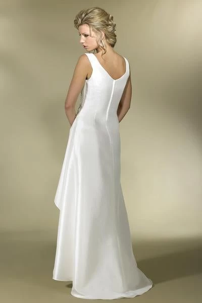 | Details: | Sleeveless, Fitted, Pleated Bodice, Crystal Accented, Side Ruffle Detail, Floor Length, V Back, Back Zipper Closure |