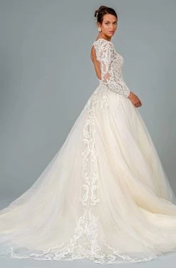 Da Vinci – Sheer Long Sleeve Lace Bridal Dress 50516 – 1 Pc Ivory/Nude In Size 12 Available