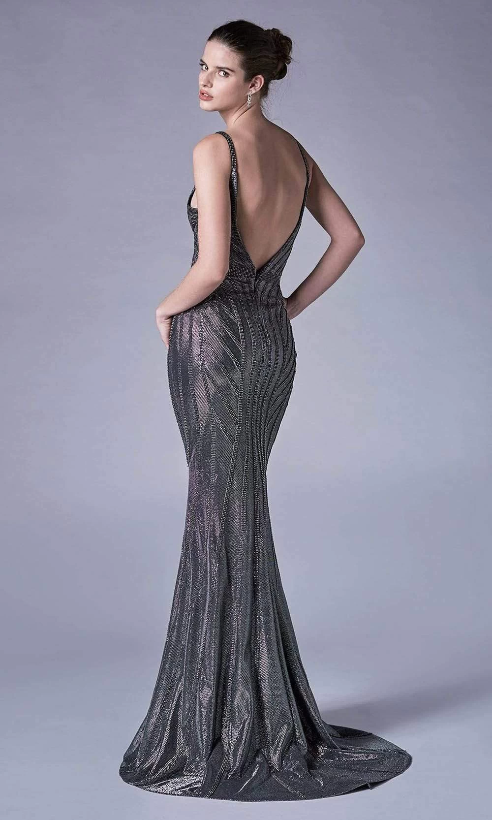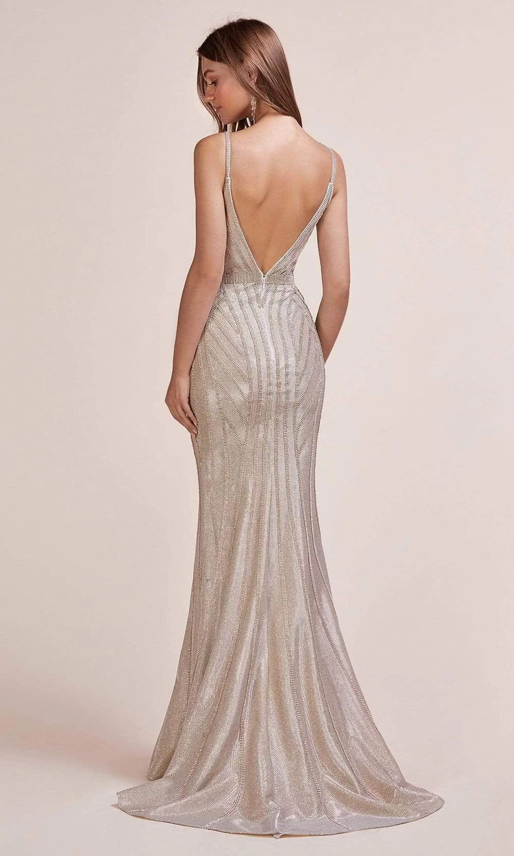 Charm everyone from all angles as you shine all night long in this Andrea and Leo A0646 masterpiece. This gorgeous gown is lavishly ornate with rhinestones. The dress is designed in a sleeveless, plunging V neckline with thin straps. The fitted bodice shows off a low V back and has a back zipper closure. The skirt tapers at the thighs and flares at the bottom to a sweep train finish. Capture that striking presence and get everyone’s attention in Andrea and Leo.
