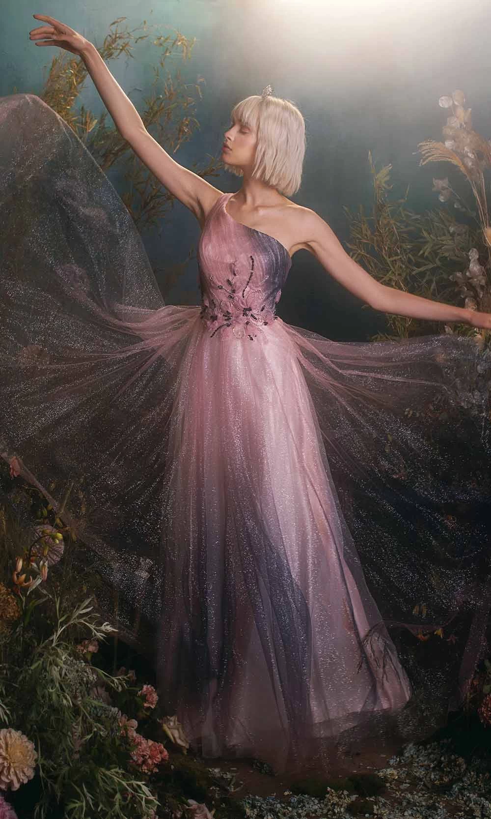 | Fabric: | Ombre glitter tulle, Floral beading, 3D Floral detail |