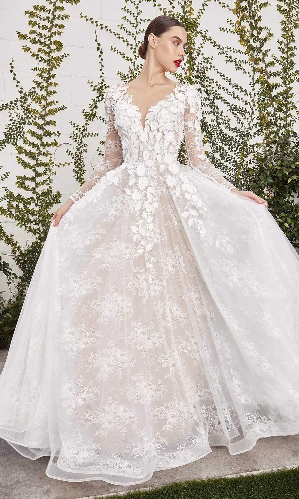 | Details: | Beaded, Lace Appliques, Long Sleeves, Deep V-Open Back, Court Train |