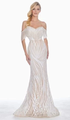 Create a perfect evening wearing this elegant dress by Ashley Lauren 1521. Charms in an off the shoulder neckline with beaded fringe details. The fitted bodice is decorated with sparkling sequins and cascade down the full length trumpet skirt. The dress flaunts an open back detail. Fall in love when you slip on this Ashley Lauren dress.