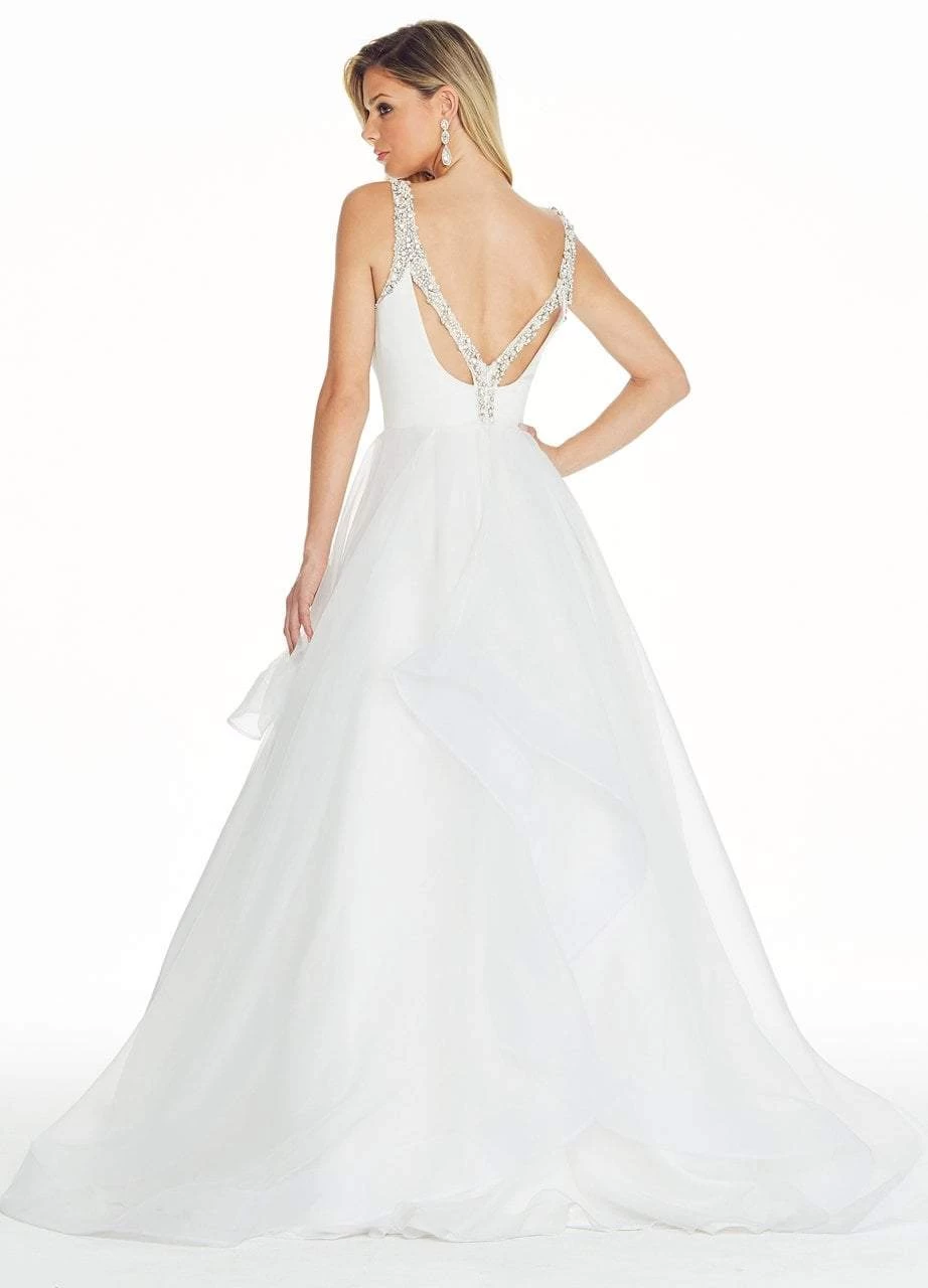 Make an entrance in this beaded silk organza bridal dress by Ashley Lauren 1292. The illusion V-Neckline bustier is adorned with pearl and rhinestone beading that continues to the back. The A-Line skirt is made from layers of silk organza. This Ashley Lauren evening gown will not let anyone miss your grand entrance.