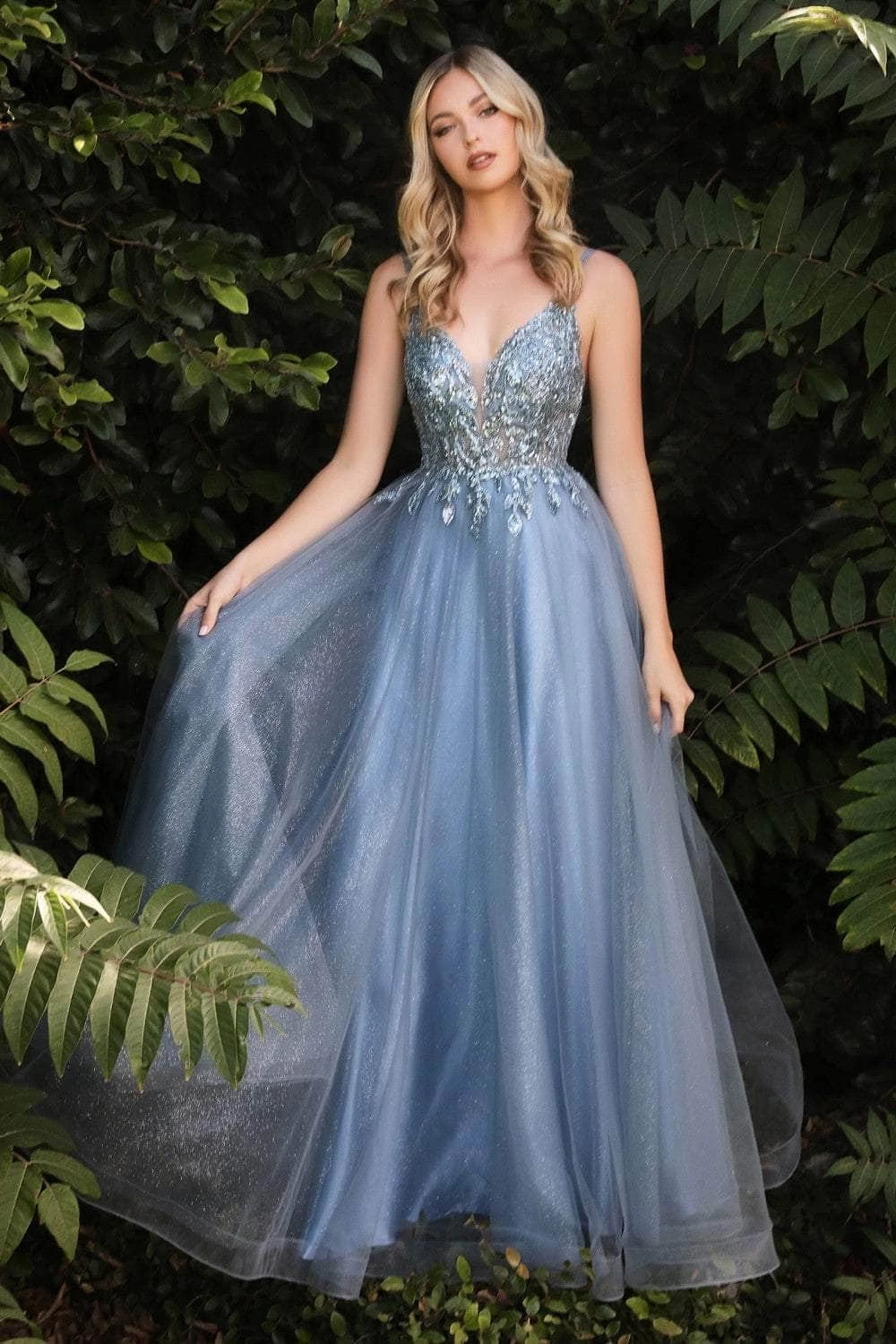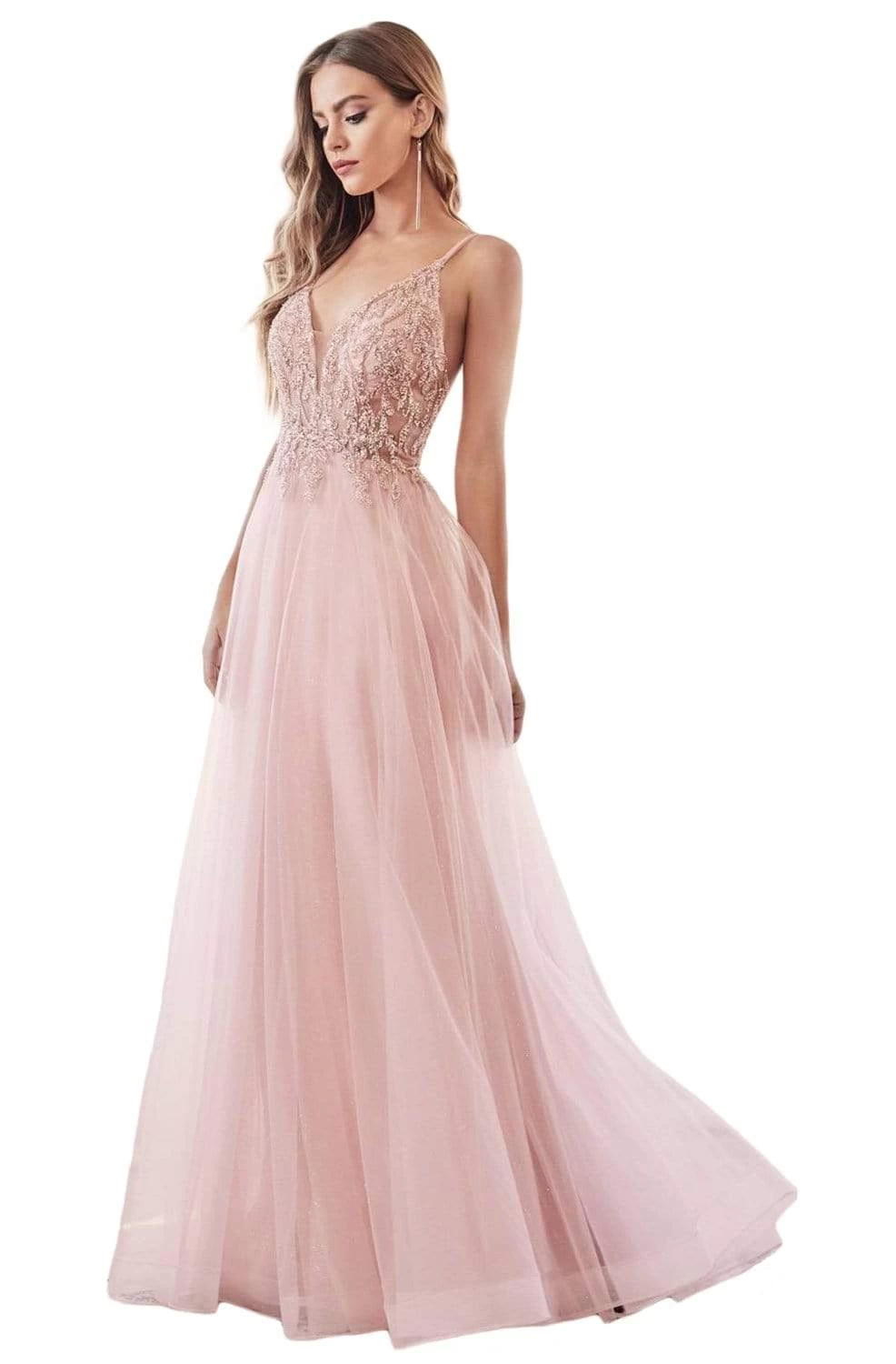Twirl on the dancefloor with pure abandon in this ethereal Cinderella Divine CD0154 creation. Exquisitely textured with beaded appliques on its fitted bodice, this dress flaunts a plunging sweetheart neckline with a tonal inset. Double straps string the bodice and traverse into a low open back. The layered tulle skirt cascades into a fluttering full-length hemline. Have longing stares follow your every move in this Cinderella Divine masterpiece.