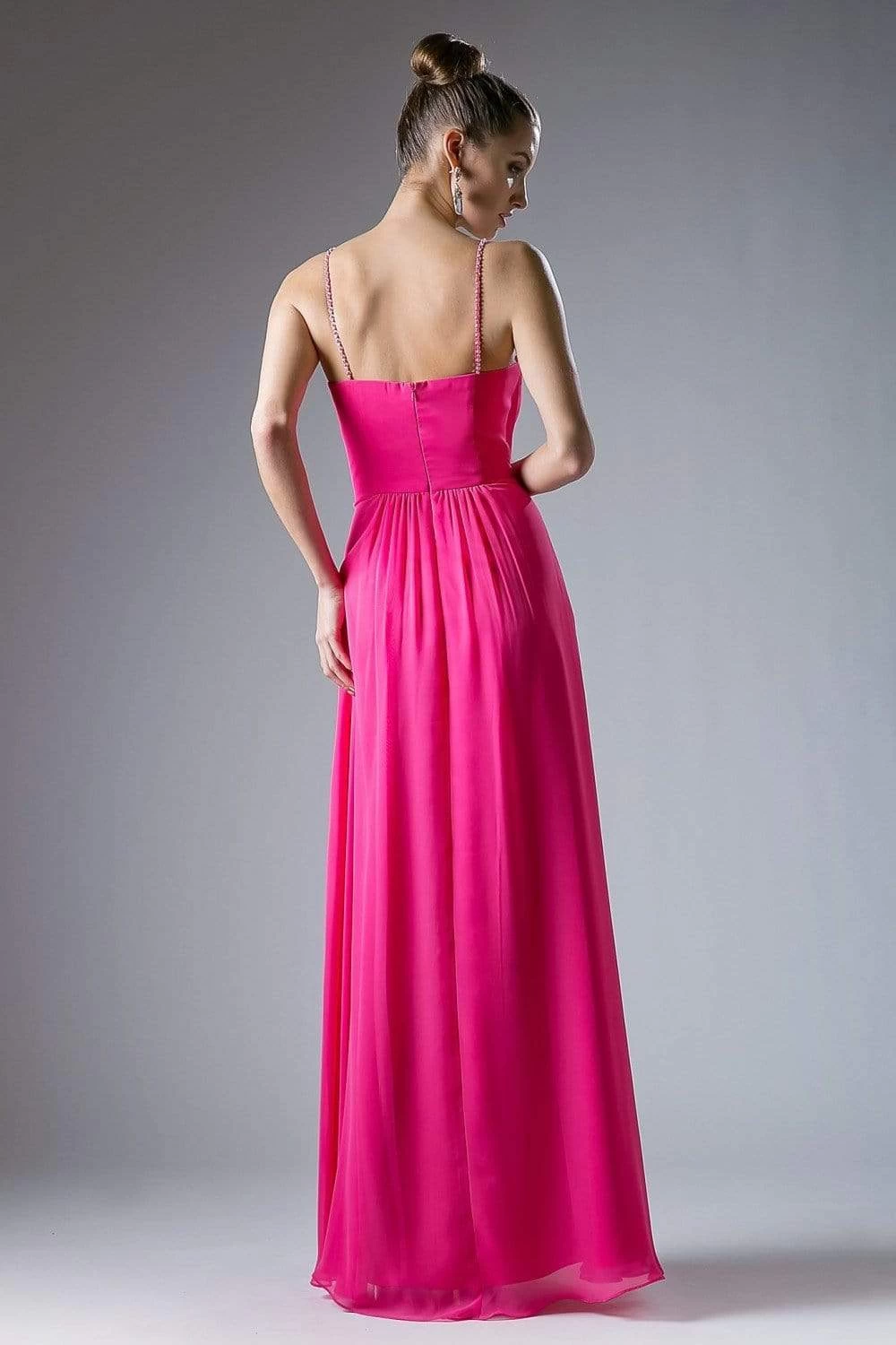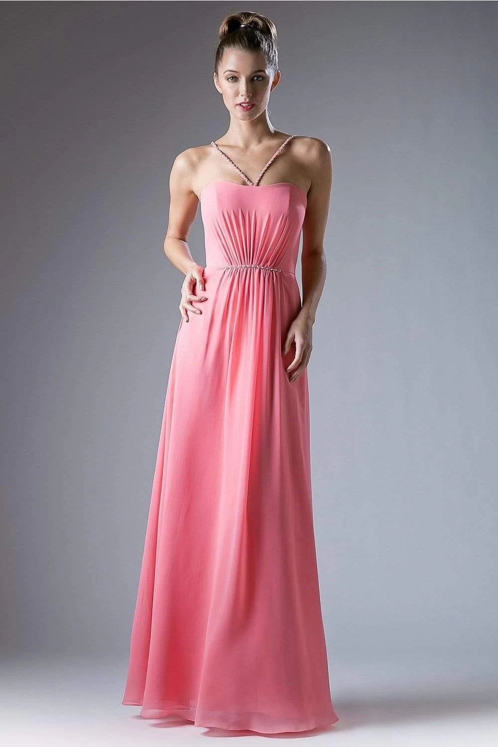 Mesmerize everyone in this charming soft chiffon gown by Cinderella Divine CJ249. A sleeveless A-line dress with a modified sweetheart neckline and beaded embellished spaghetti straps. Sheered details gather on the natural waistline and lined with jewel beads. The skirt elegantly flows with subtle flare down the floor length hem. Offered in various soft pastels and bright colors, the dress is suitable for bridesmaids, wedding guests and formal events. Be simply pretty wearing Cinderella Divine that is sure to make you the darling of the party!