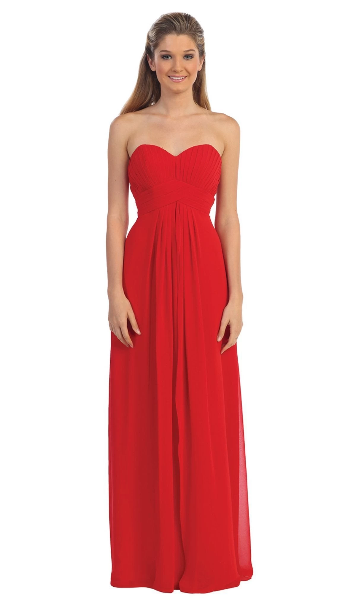 A bold design stands out from the crowd with this fabulously detailed long gown. You’ll love how the figure-flattering crisscross pleats along the bodice draw the eye to the elegant floor sweeping A-line skirt with a stunning split front overlay. Perfect for Prom, Military Ball, Pageant, Homecoming, or as a Wedding entourage – you will be a real darling in this dress!