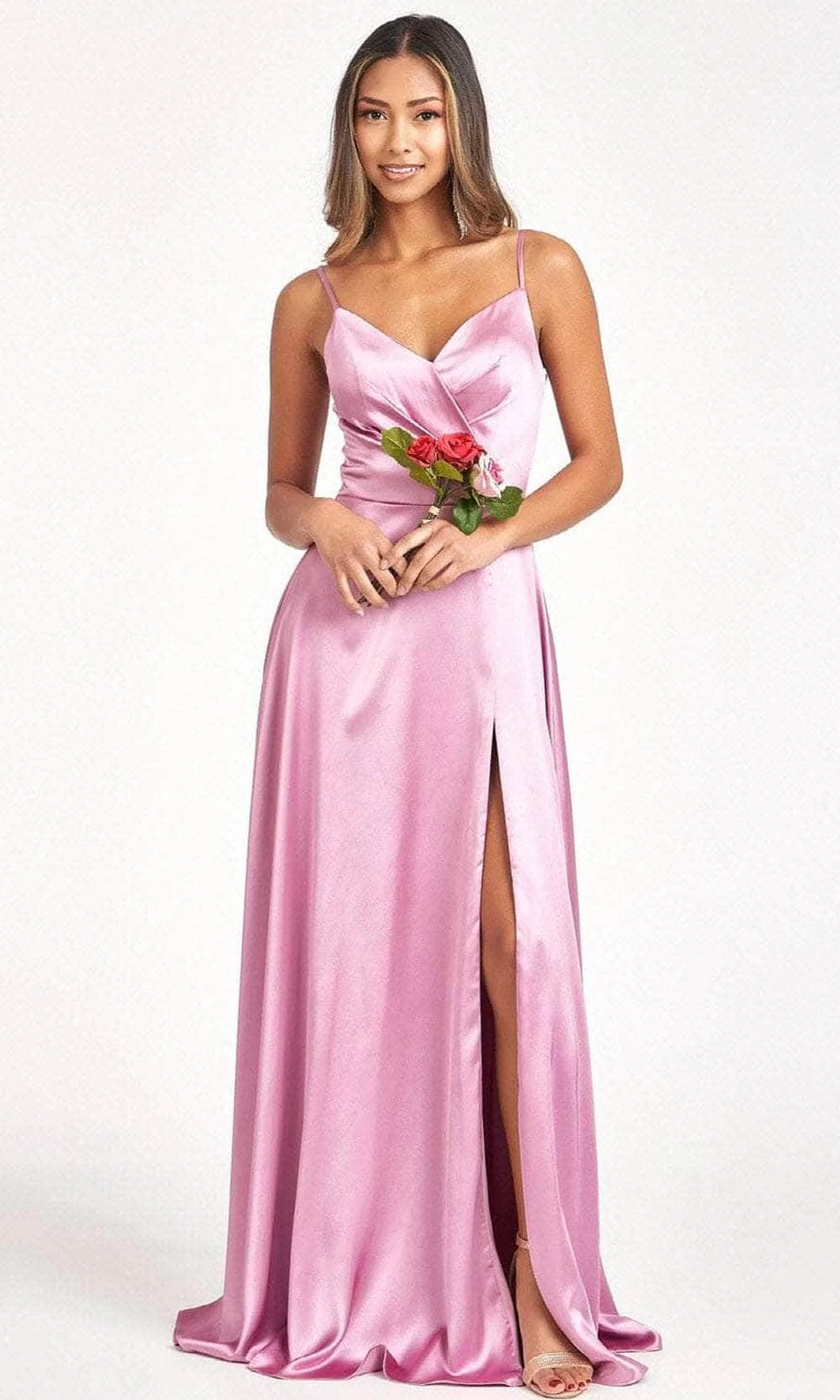 Transform into a sultry siren when you don this Elizabeth K GL1993 creation.ย Sleekly tailored for that flattering fit, this satin piece parades with a v-neckline on a spaghetti strap trailed bodice. Defined with pleats gathering in a faux wrap bodice, the back is also accented with a v-open design and a zipper closure. Highlighted with a sexy slit, the satin skirt as it flows into a full length A-line silhouette. Dare to stand out among the stylish crowd in this classy Elizabeth K masterpiece. Find more Bridesmaid Dresses.