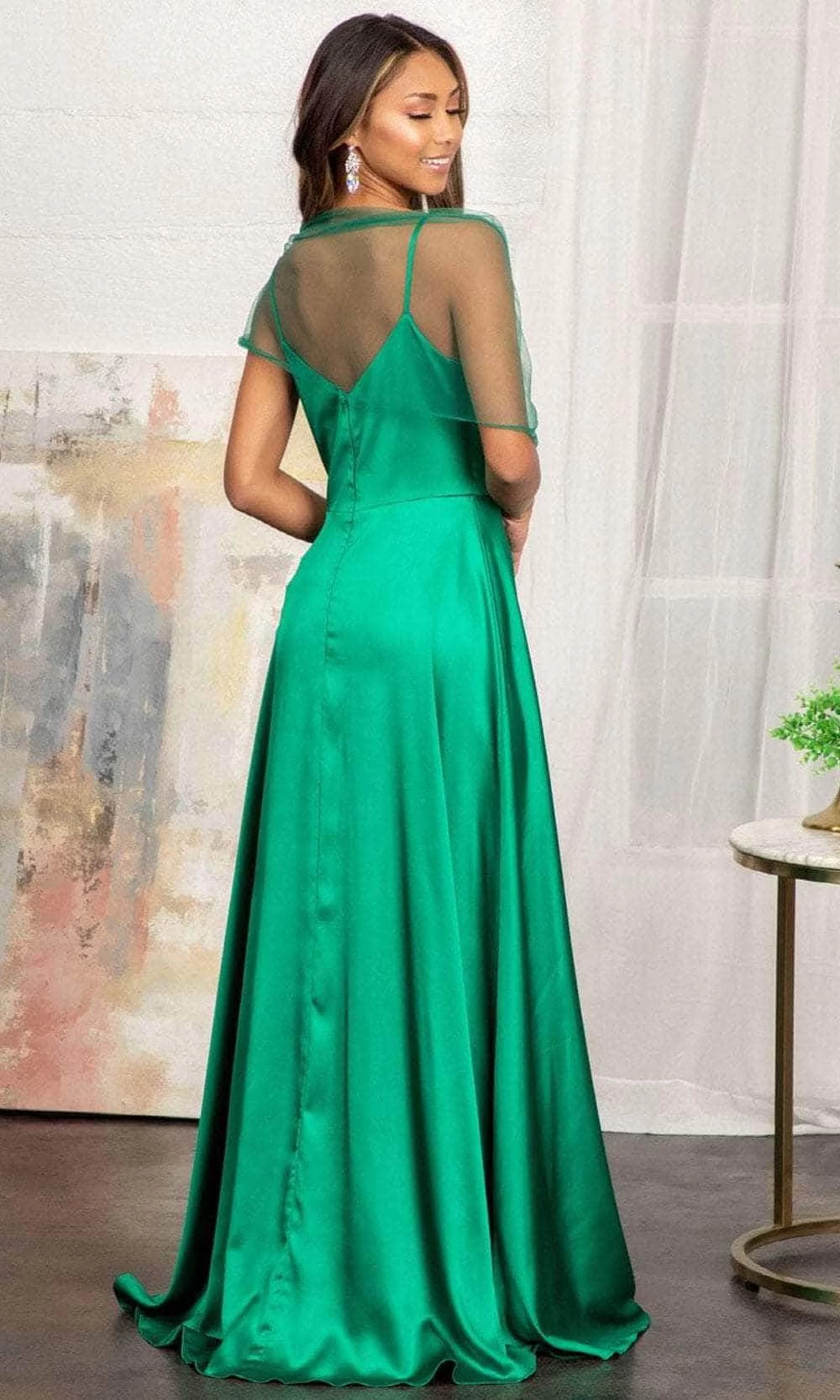 | Details: | Spaghetti Straps, Faux Surplice Bodice, V-Open Back, Zipper Closure, High Slit, Full Length Hem |