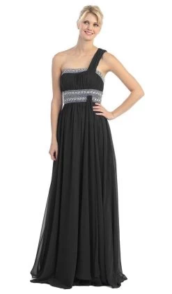 Impress the crowd with your stunning style wearing this elegant Eureka Fashion 2426 creation. Fabricated in a vividly designed chiffon fabric, this gorgeous number shows an asymmetrical neckline with a beaded trim and a ruched one shoulder strap. Beautifully shirred, the waist is beautifully detailed with jewels on double bands. Paired with a matching shawl, the A-line skirt flutters down to a full-length hemline. Be a constant fascination to the trendy crowd in this Eureka Fashion masterpiece. Model is wearing the Coral and Royal Blue colors.