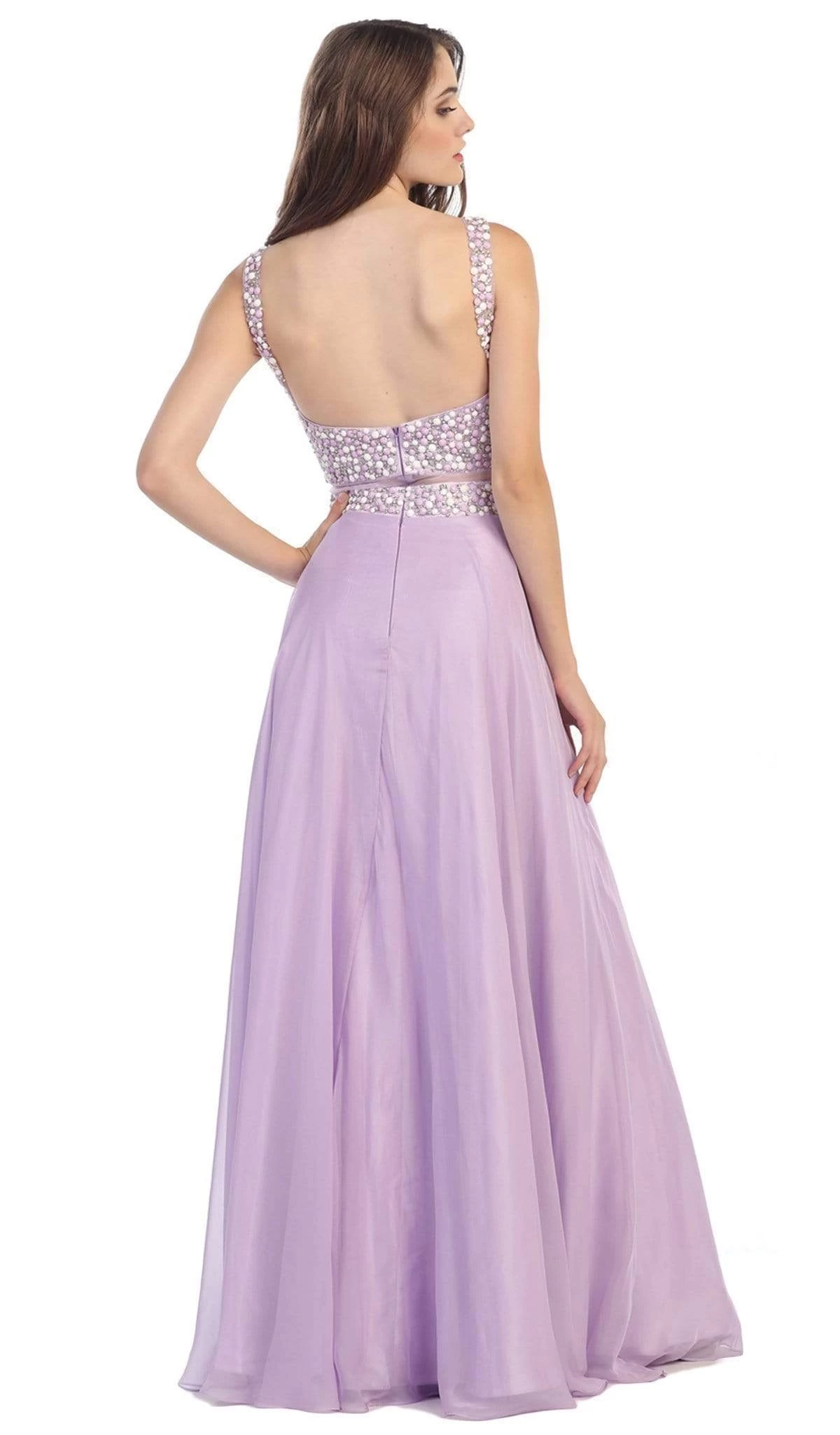 | Details: | Fabric: Chiffon, Sleeveless. Fitted, Sheer Neckline and Midriff, Beaded Bodice and Waist, Soft Pleated Skirt, Floor Length, Square Back, Back Zipper Closure |