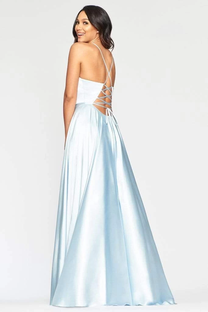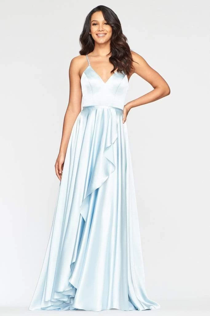 Express immaculate elegance in this glamorously rendered Faviana S10460 creation. Sleekly crafted in a charmeuse fabric, this beauty shows a deep v-neckline with spaghetti straps. Styled with crisscrossing straps and a lace up detail at the back, the A-line skirt flaunts an asymmetrical wrap design with a high slit and a subtle train. Reveal a mesmerizingly feminine flair in this Faviana masterpiece. Models are wearing the Ice Blue and Red colors.