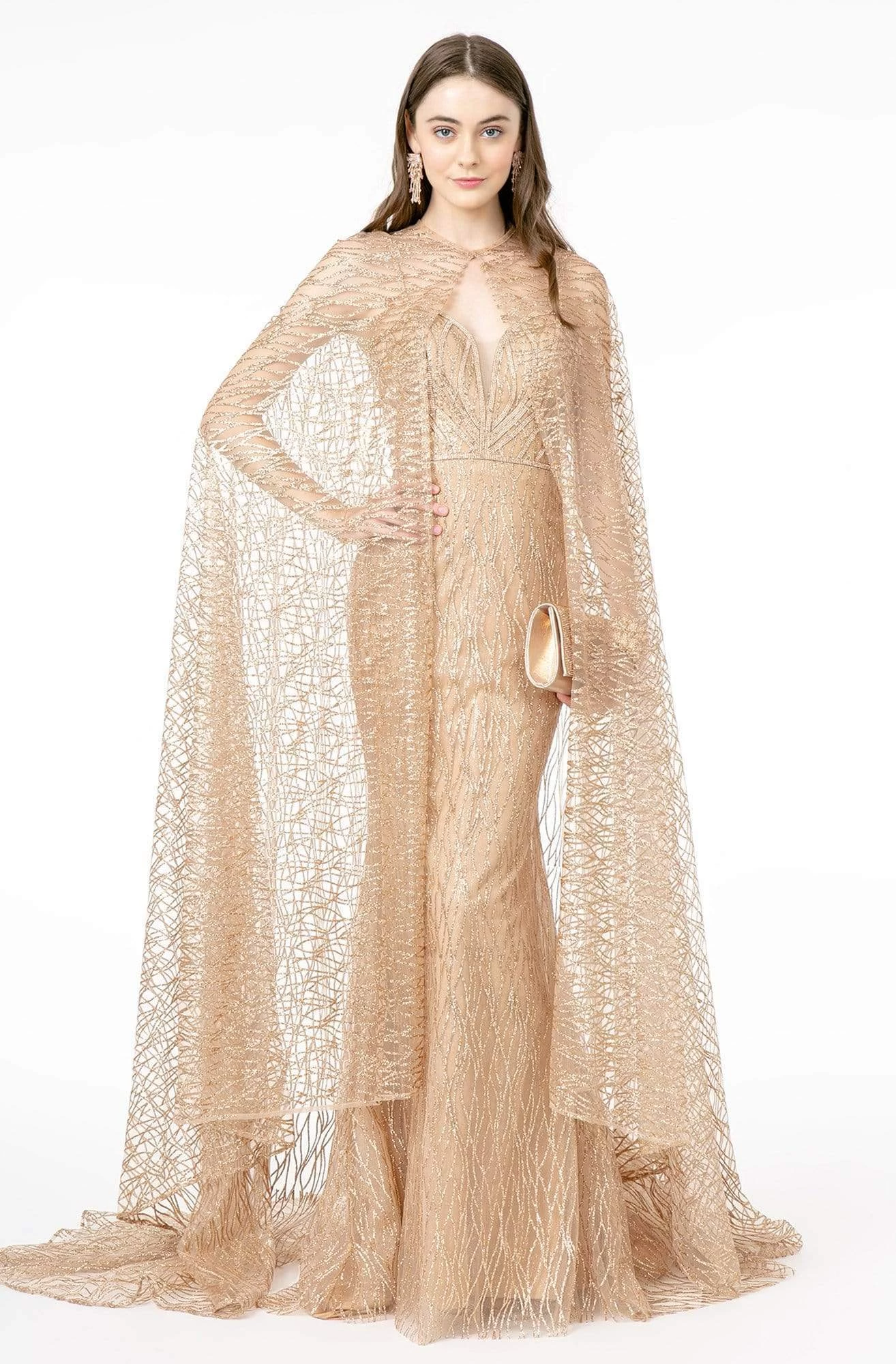Look picture perfect in this regal dress by GLS by Gloria GL1830. The whole ensemble is designed in sparkling jewels and glitters which provide the shimmering effect. A sweetheart neckline crowns the sleeveless bodice, complemented with mid-open zipped up back and the skirt displays a mermaid silhouette which finishes with a sweep train. Adding majestic feel is the sheer cape that gracefully cascades to the floor. All healthy eyes on the ball will be into you when you show up in this GLS by Gloria creation.
