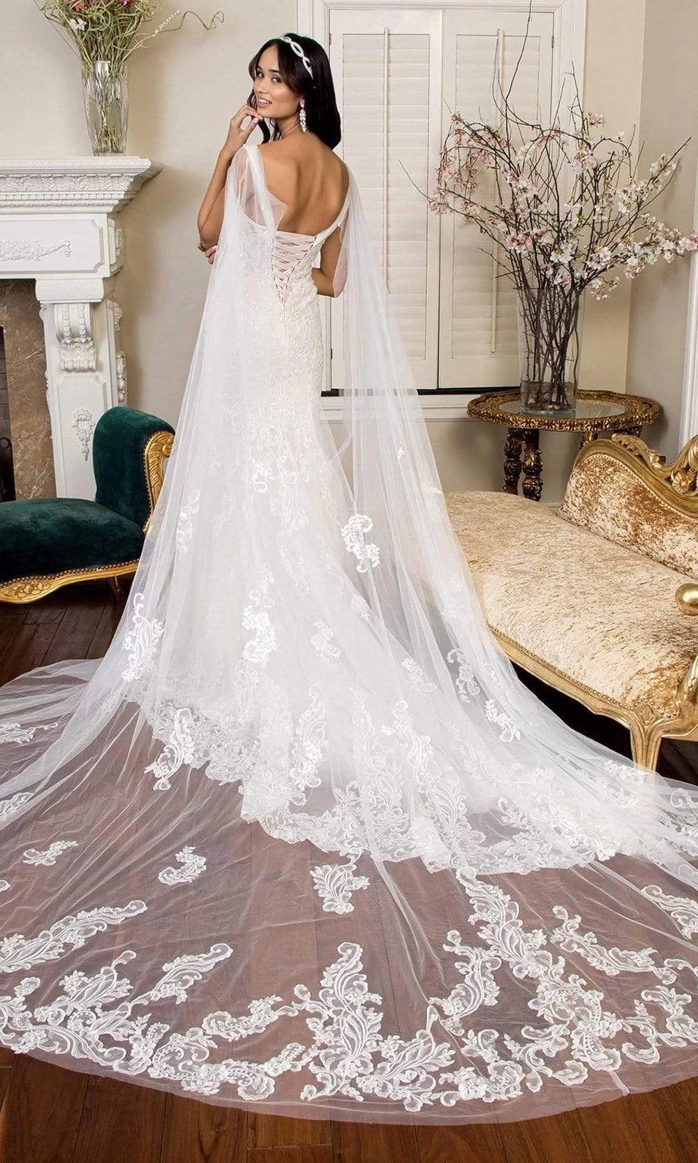 | Details: | Fully Embroidered, Sleeveless, Sheer Cape, Floor Length, Mid-Open Lace Up Back |
