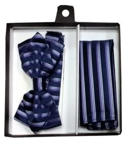 Blue/Purple Striped Bow Tie With Pocket Square (Pointed Tip)