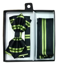 Lime Green Striped Bow Tie With Pocket Square (Pointed Tip)