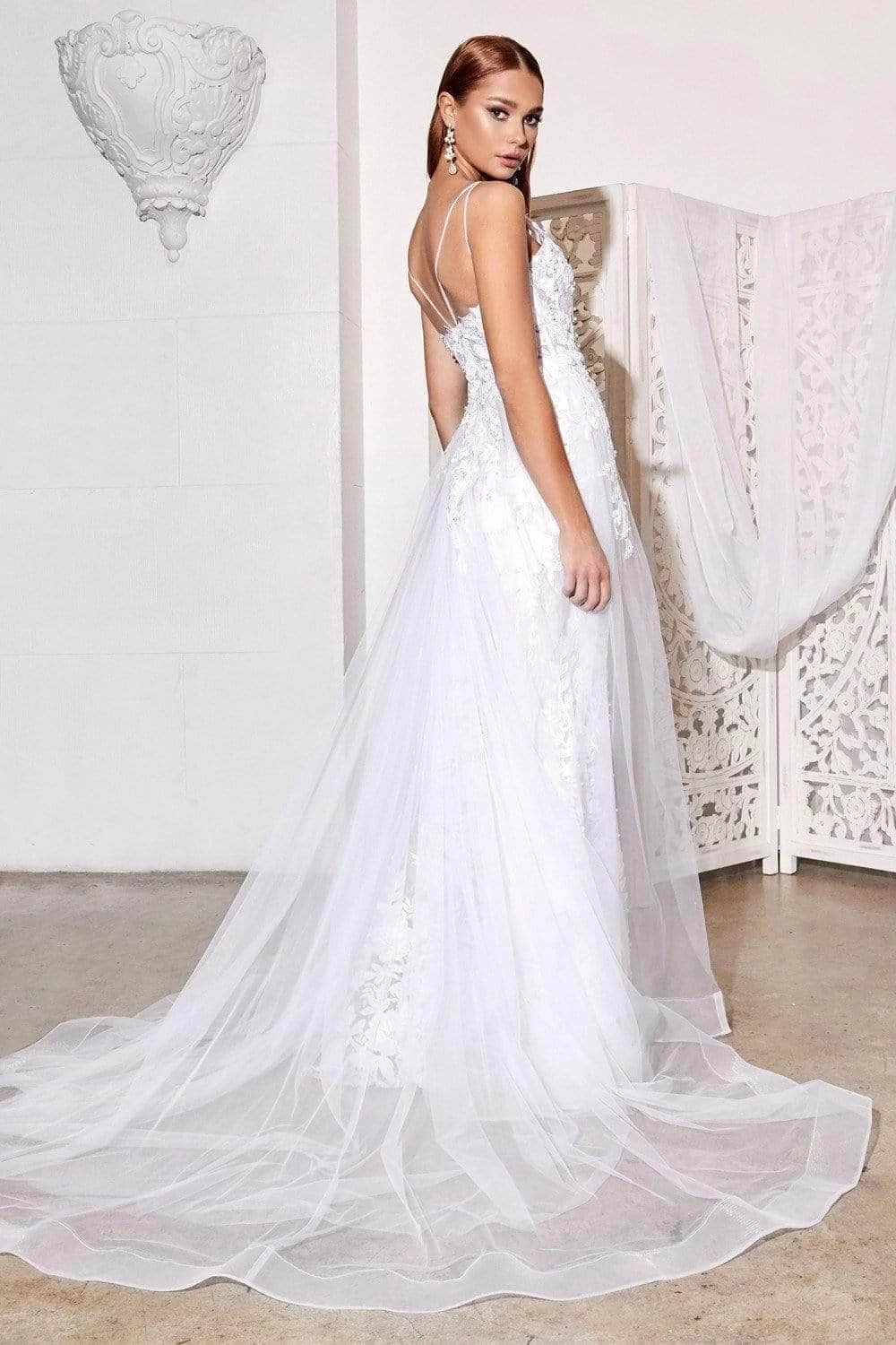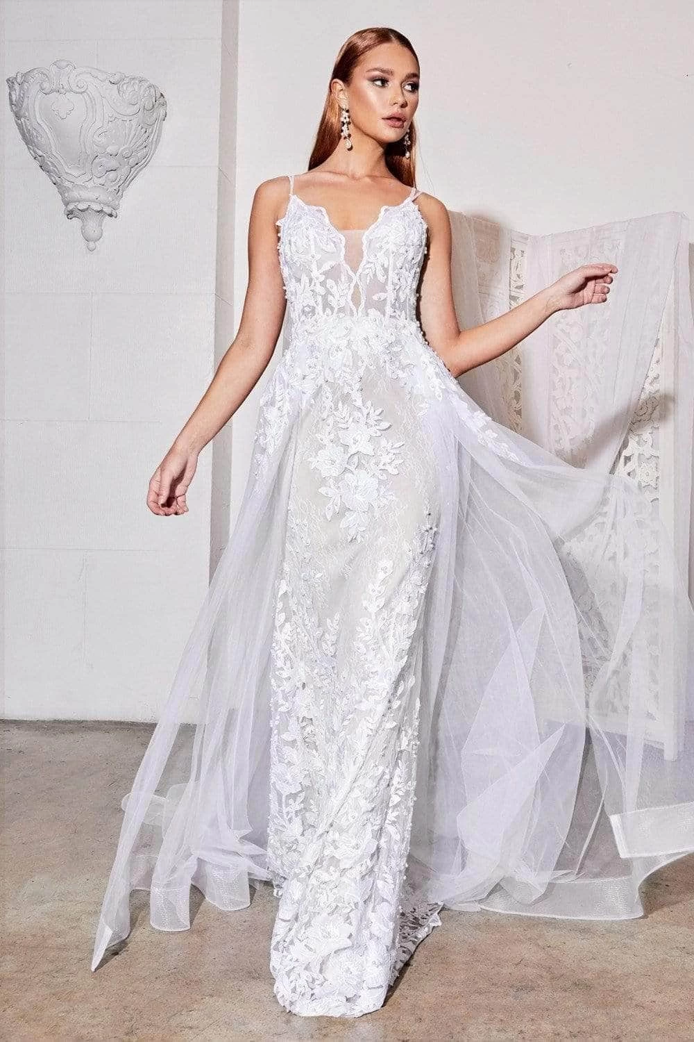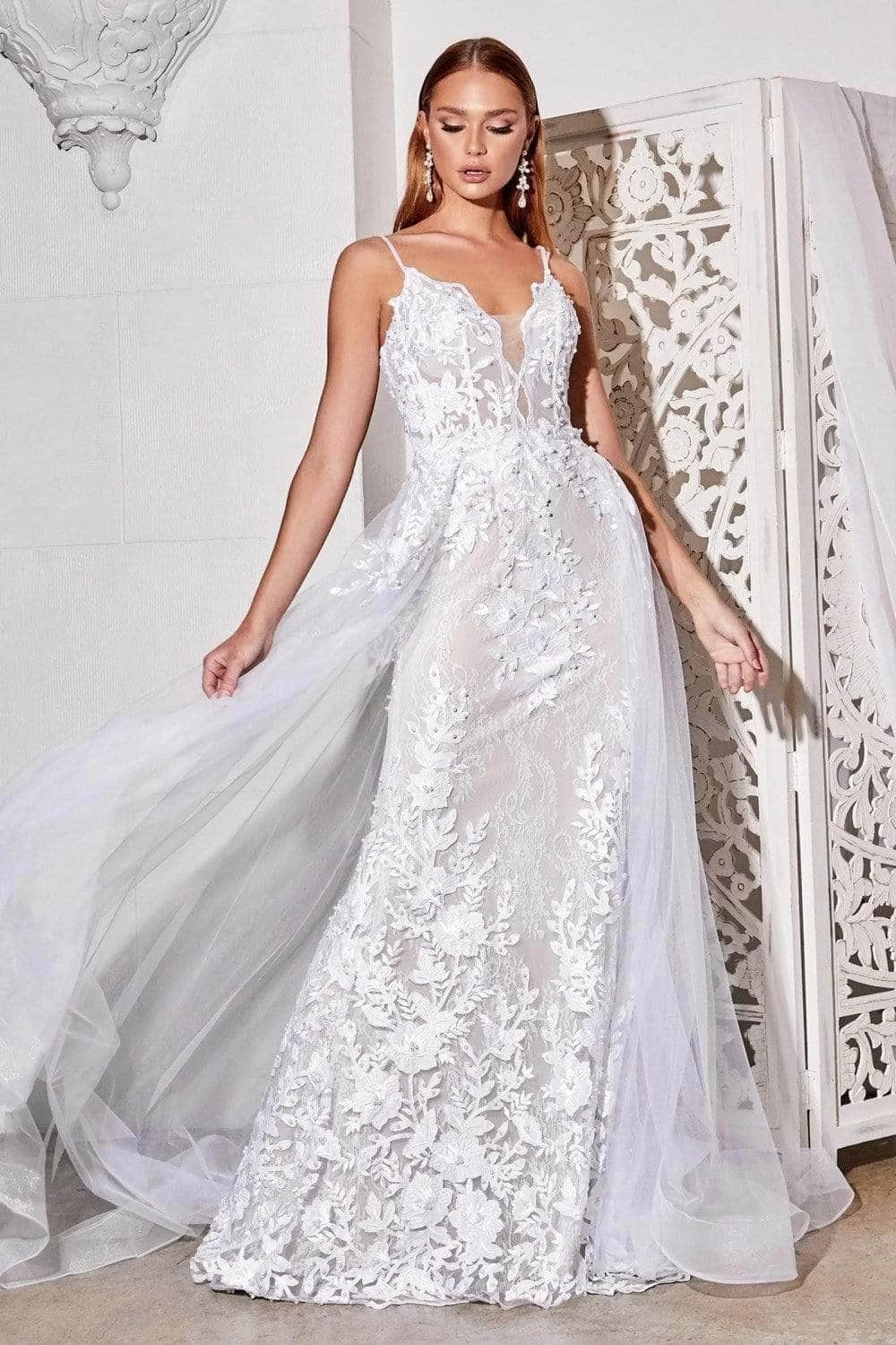 When you walk down the aisle in this captivating LaDivine CD931W Bridal Dress, you will radiate romance and spectacular adoration. The gown is made of delicate lace fabric and is elegantly embellished with floral appliques. It has a corset style semi-sheer bodice with double-strand spaghetti straps and a mid-open back. The skirt has a sheath silhouette elegance from the natural waist, while the layered tulle overskirt flourishes perfectly to confirm this gorgeous costume with a dramatic court train end. When you wear this LaDivine Wedding Dress, you can be sure that your grand walk will be everything it deserves to be. The model is wearing an Off-White.