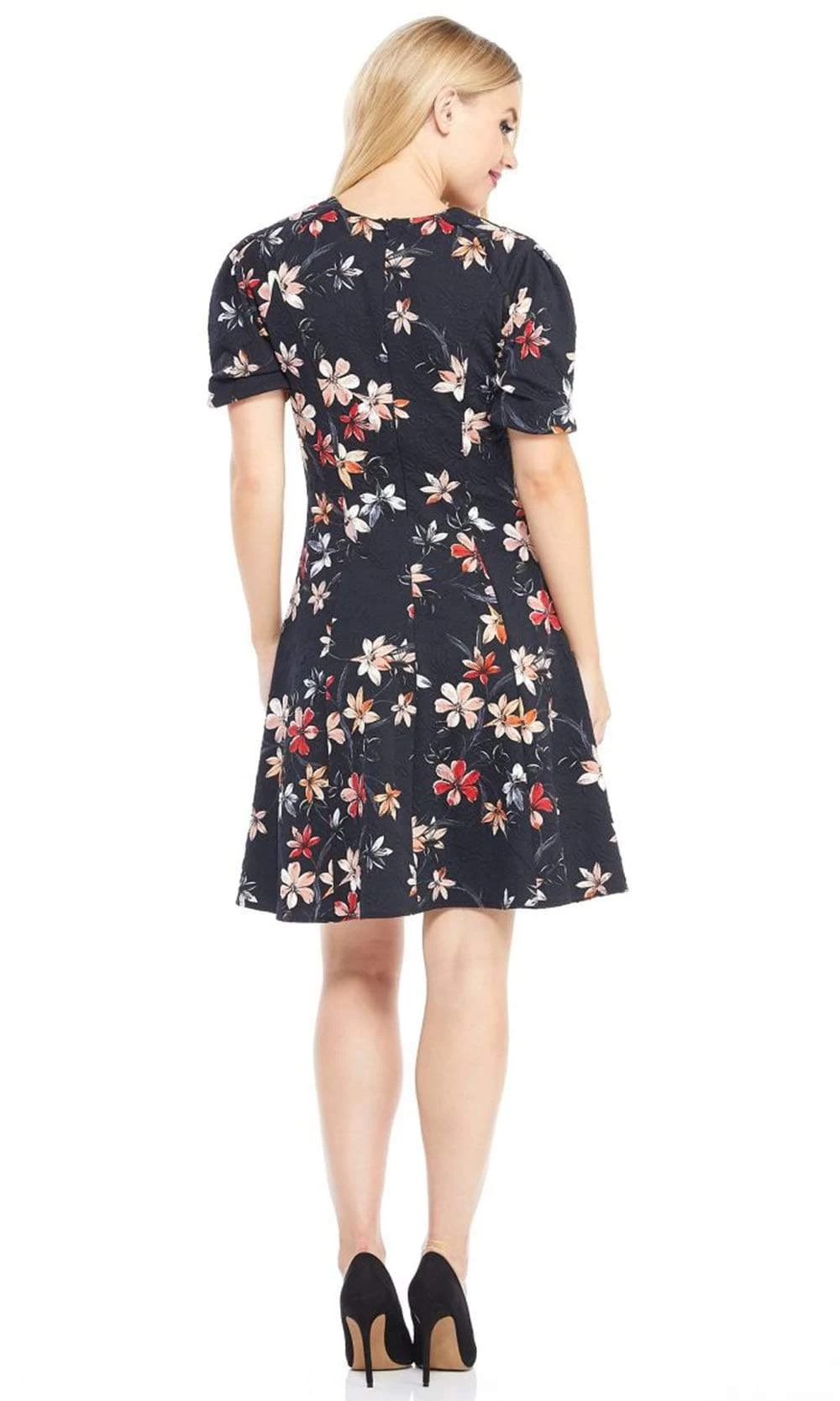 | Details: | Jacquard, Short Sleeve, Zipper Back, Floral Print, Fit and Flare Skirt |