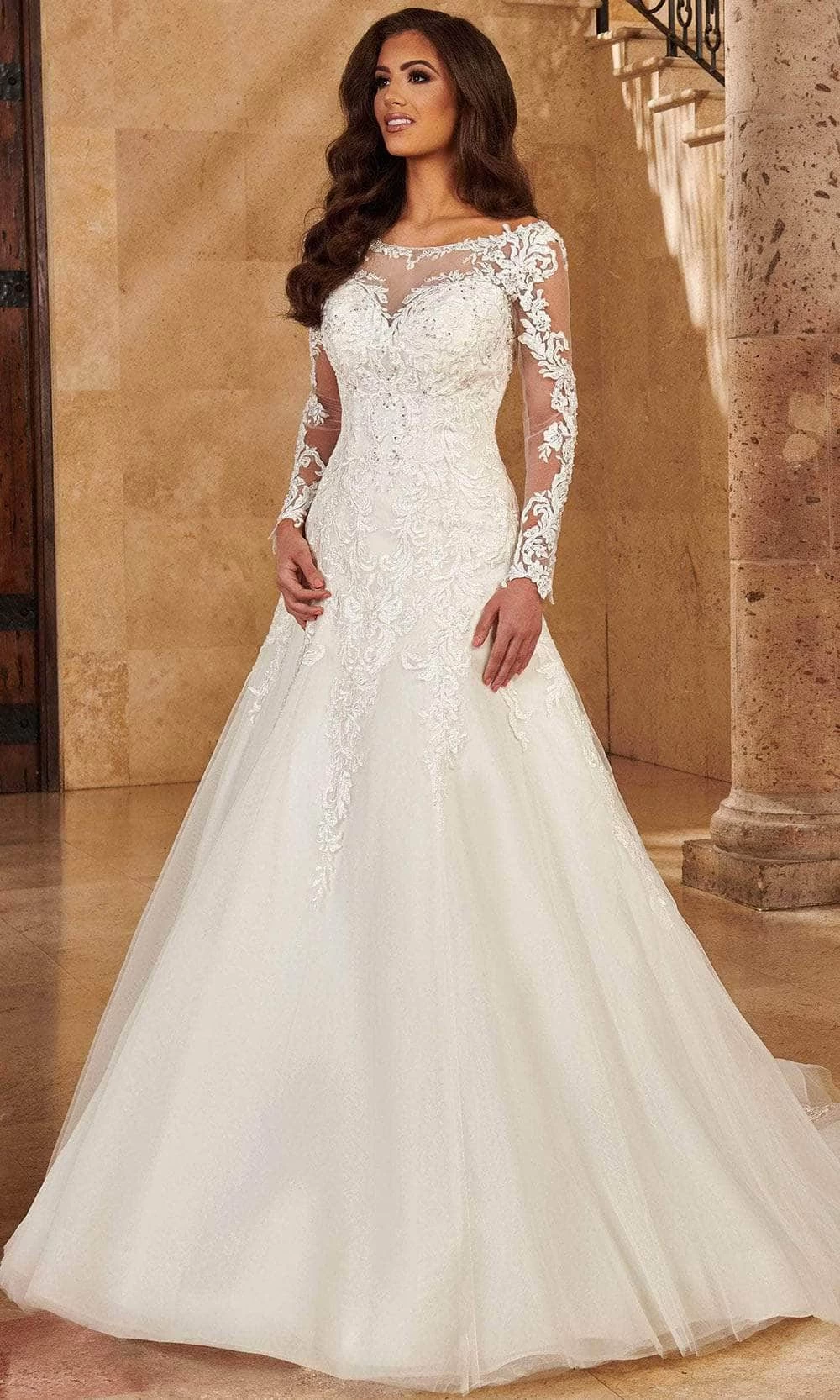 The night is yours in a spectacular gown from Maryโs Bridal MB4125. Crafted in beautiful applique embroidery with sparkling bead details all over the bodice, this stunning piece displays an illusion bateau neckline with sweetheart lining and sheer long sleeves. The back reveals a cutout detail and laced up closure. The A-line silhouette skirt drifts elegantly into a floor-length hem with a chapel train finish. Saunter with the elegance and style in this Maryโs Bridal masterpiece. Maryโs bridal dresses have the widest range of styles, patterns and colors to choose from. Depending on your body type and skin complexion you can pick any dress as per your preferences. Model is wearing White color.