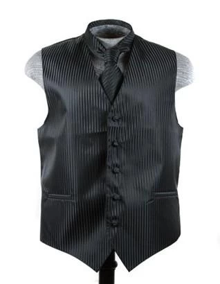 Men’s Black Striped Vests with Neck Tie are a must-have when you need to look dashing for a wedding, prom, formal parties, church, stage production, or for any other formal occasion. These striped vests feature a timeless tone-on-tone vertical striped pattern, side pockets, and comes with a matching Neck Tie. You can easily color coordinate outfits with people for any special event with this men’s black striped vest because it is offered in many sizes. For an additional 3 dollars, you can order a matching handkerchief. These striped vests also make a great gift for men!