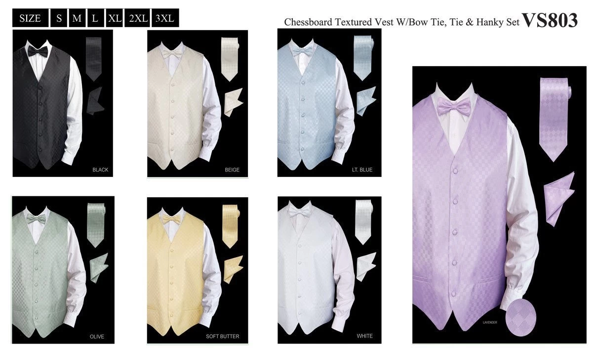 Men’s Checkered Vest with Matching Neck Tie, Bow Tie, and Pocket Square is a must-have when you need to look dapper for any formal occasion. Made out of polyester, this vest features checkered chessboard pattern for a classy look, side pockets, and a row of matching buttons.