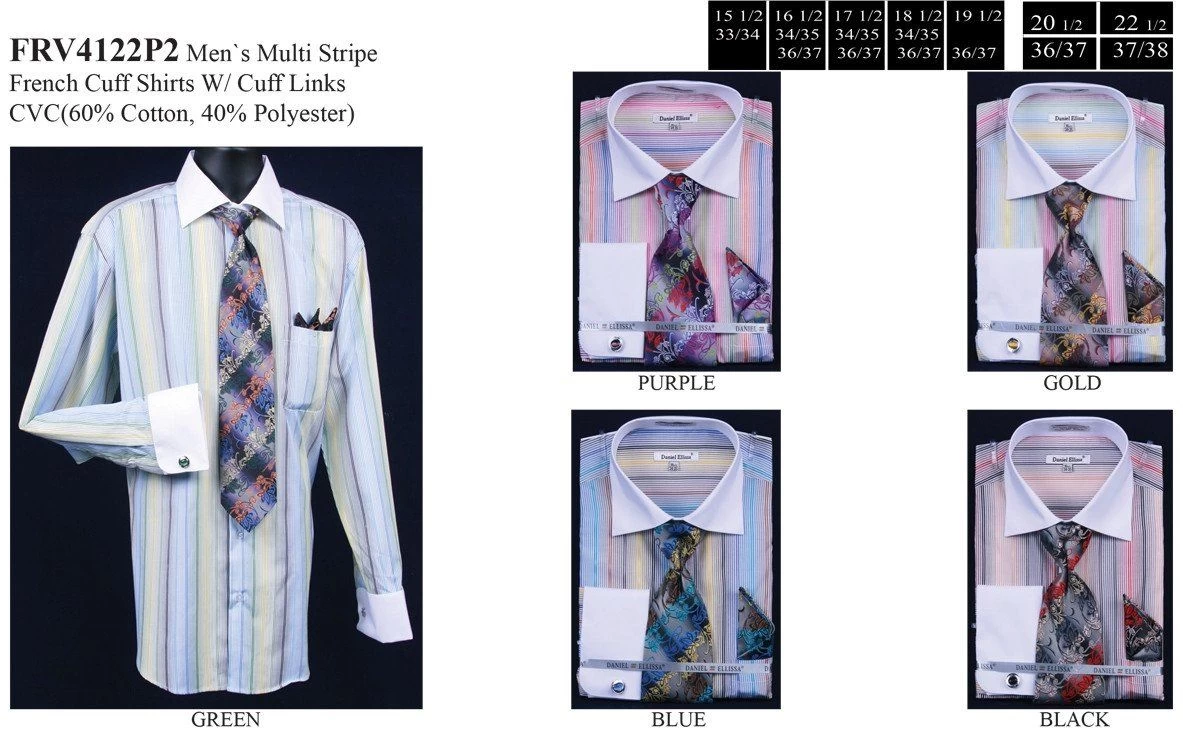 - Men’s Pastel Colored Striped Dress Shirts with Tie, Hanky, Cufflinks