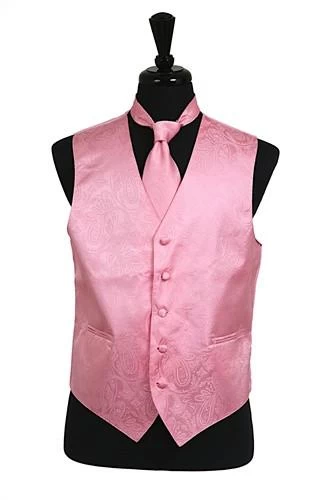 Men’s Pink Paisley Vests with Neck Tie are a must-have when you need to look dashing for a wedding, prom, or for any other formal occasion. These paisley vests feature a sophisticated tone-on-tone paisley pattern, side pockets, and comes with a matching neck tie. You can easily color coordinate outfits with people for any special event with this men’s pink paisley vest because it is offered in many sizes. For an additional 3 dollars, you can order a matching handkerchief. These paisley vests also make a great gift for men!