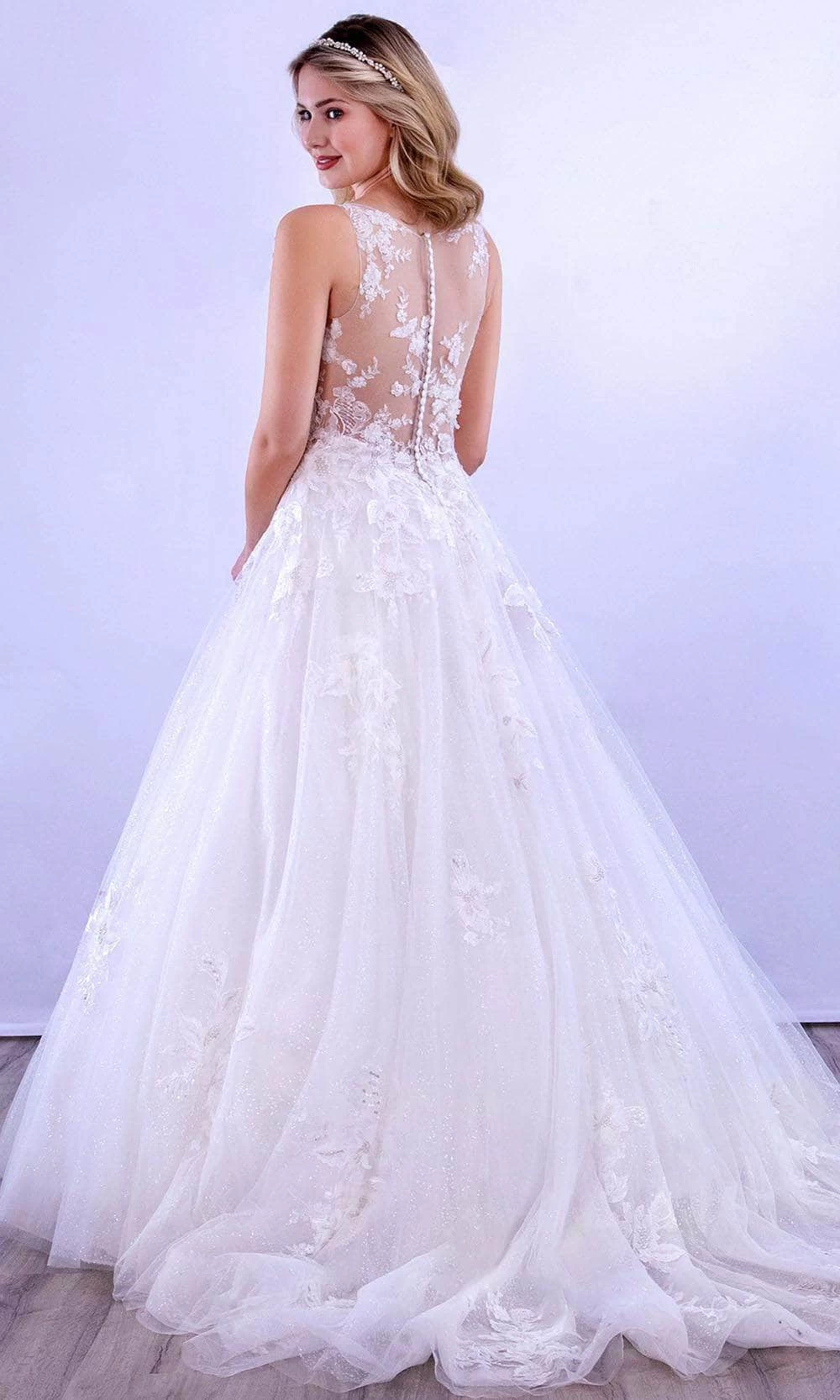 Walk in glamour and let all heads turn on you in this creation by MNM Couture. An enchanting fairy-style princess dress with a twist. Whatever event you have on your list, you will definitely find this perfect daring, sheer V-shaped bodice that has Lace appliquรฉ and beads artfully positioned to preserve modesty but the lingerie effect is clear. The skirt is a gorgeous swathe of shiny Tulle flecked with Lace appliquรฉ. Model is wearing Ivory/Nude