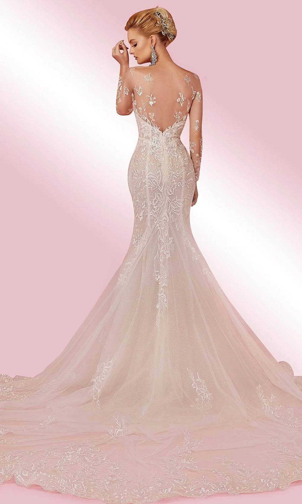 Wear this magnificent mermaid dress, which will surely make you stand out from the crowd, to demonstrate your spirit. It has a sweetheart neckline, sheer long sleeves, and Lace applique embellishments. This dress includes lace applique accents that embrace your figure beautifully, and the train glides as you walk down the aisle. Radiate a fresh look style as you orchestrate a dramatic entrance in this dazzling dress by MNM Couture. Model is wearing Off White