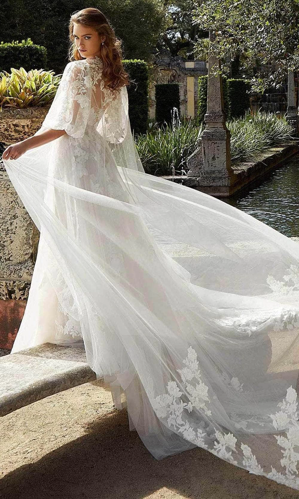 | Details: | sleeveless, Beaded Spaghetti Strap, Sheer Corset Boning Bodice, lace Embroidery, Illusion mid-open Back, buttons, Semi-Cathedral Train |