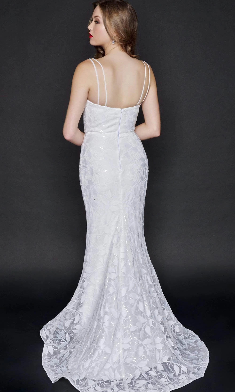 Dress to impress with this Nina Canacci 4207 evening gown. Graceful in a scooped neckline, this spaghetti strap gown traces out a fit and flare silhouette for a statuesque figure. This gorgeous number is inlaid with reflective embroidery on a lace overlay, adding exquisite texture. Nina Canacci gives you stunning looks for any evening occasion.
