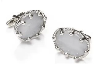 Add a classy look to your outfit with these oval silver cufflinks decorated with a white stone. A variety of cufflinks make a great addition to any wardrobe because they add a sophisticated finishing touch to a formal attire. Look sharp in these affordable cuff links for job interviews, weddings, work, for any occasion. Also make a great gift for men!