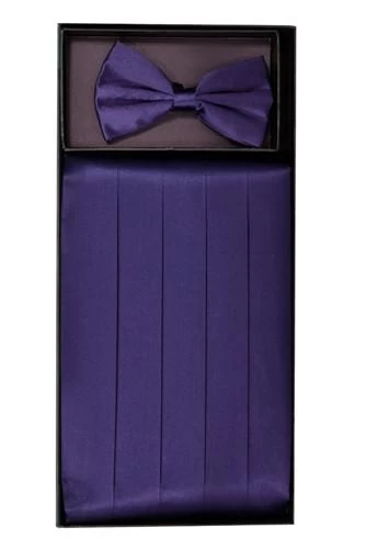 Add a special touch to your tuxedo or uniform with this plum cummerbund and pre-tied bow tie set. This plum cummerbund will accentuate your tuxedo and is great for any formal event.