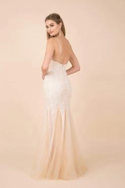 Sherri Hill – 52342 Beaded Lace Deep V-neck Long A-line Dress