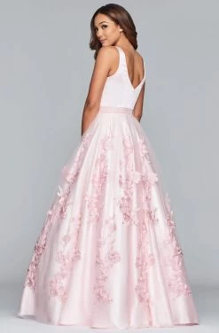 Faviana – S10230 Sleeveless Deep V-neck Satin Tulle Applique Ballgown
