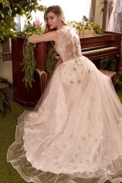 Andrea And Leo – A0762 Beaded Floral Lace Bodice Tulle A-Line Gown