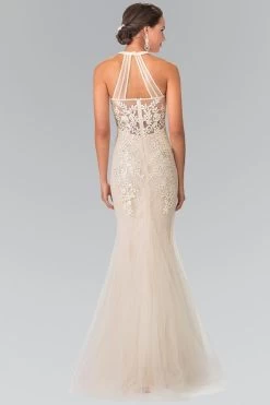 Dancing Queen – 2369 Embroidered Sheer Halter Chiffon Prom Dress