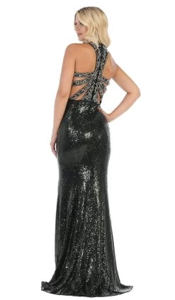 Nicole Bakti – 645 Metallic Ladder Accented Plunging A-Line Dress