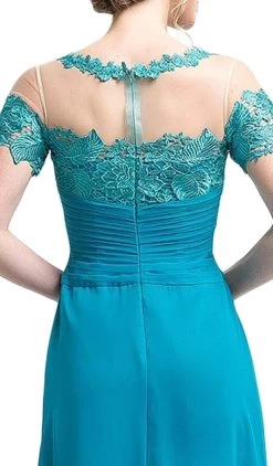 Cinderella Divine – Lace Illusion Bateau Pleated Sheath Dress