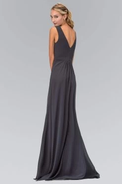 Elizabeth K – GL1389 Jewel-Accented Pleated V-Neck Chiffon Dress