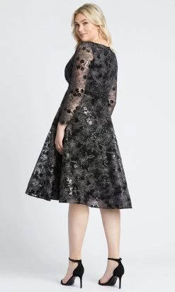 Mac Duggal 9142 – Long Sleeve Illusion Neckline Tea Length Dress
