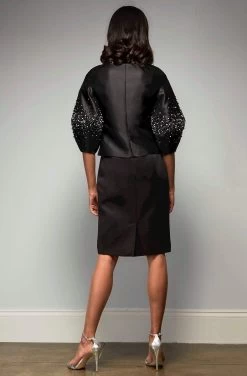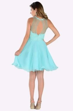 Nicole Bakti – 645 Metallic Ladder Accented Plunging A-Line Dress