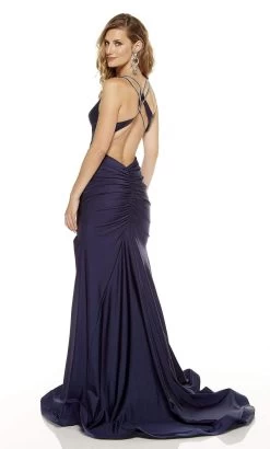 Alexia Designs – Asymmetrical Ruched Short Dress 4124 – 1 Pc Navy In Size 20 Available