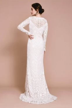 Tadashi Shoji – Long Sleeve Embroidered Bateau Wedding Dress