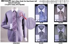 Men’s French Cuff Dress Shirts With Striped Tie And Hanky