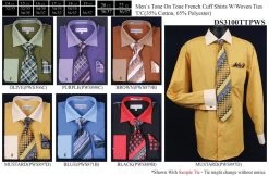 Men’s Two Tone French Cuff Dress Shirts With Tie And Hanky