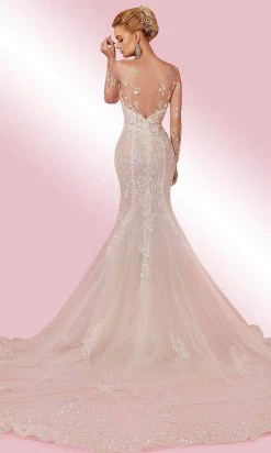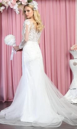 May Queen – RQ7603 Embroidered Long Sleeve Bateau Trumpet Dress