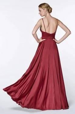 Cinderella Divine – CJ526 Sheer Plunging Neck Double Slit Satin Gown